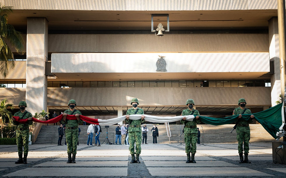 • Con el fin de conmemorar el Día de la Fuerza Aérea Mexicana, autoridades civiles y militares llevaron a cabo la ceremonia de izamiento de bandera a toda asta con Honores de Ordenanza en la plaza cívica de Palacio de Gobierno.