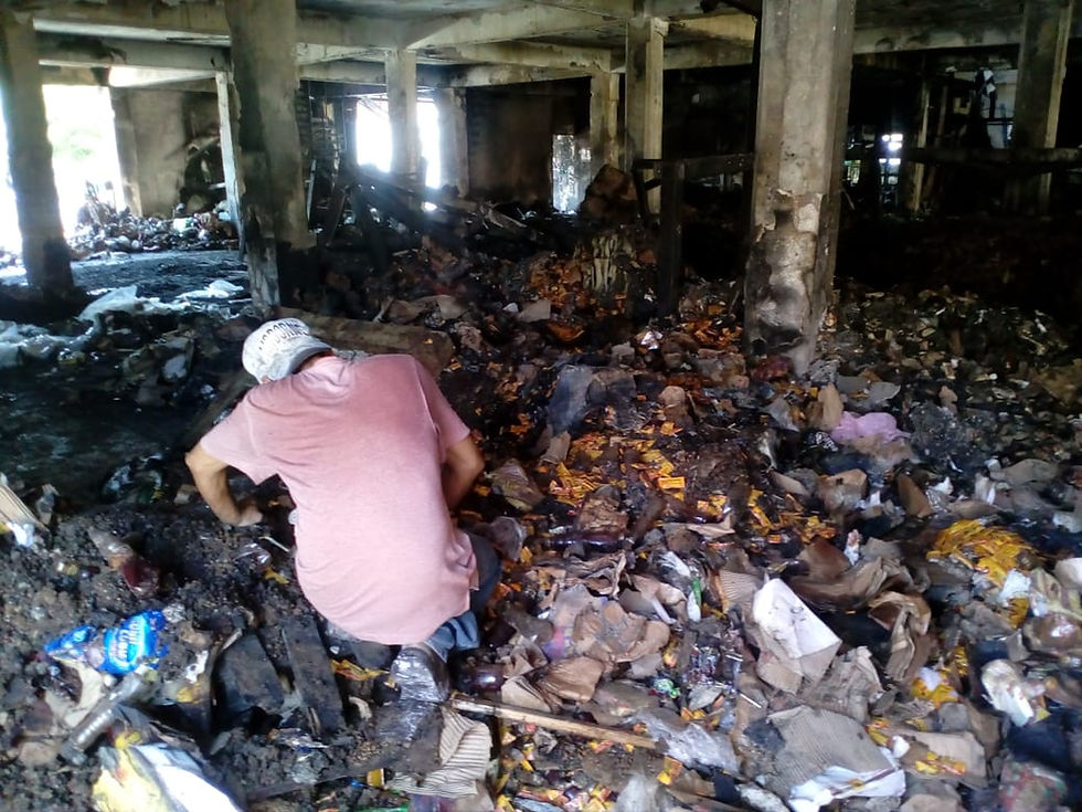 LOS MOCHIS.- El centro dulcero que sucumbió ante las llamas el pasado tres de julio está siendo visitado por pepenadores, quienes entre las cenizas logran “rescatar” algún producto para venderlo en algunos centros comerciales de la localidad, exponiendo la salud de miles de ciudadanos ahomenses al estar consumiendo mercancía prácticamente carbonizada.