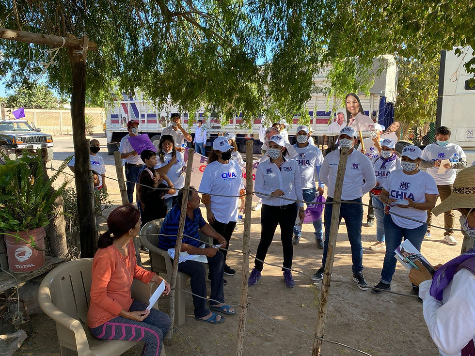 Elizabeth Chia realizó visitas domiciliarias, casa por casa, pidiendo el voto de confianza también para el candidato a gobernador, Dr. Rubén Rocha Moya, ya que dijo: “Trabajaremos juntos, en una misma línea, para lograr mejores resultados por el bienestar de Sinaloa, por eso los invito a que este próximo 6 de junio voten PAS-MORENA, no les fallaremos”.