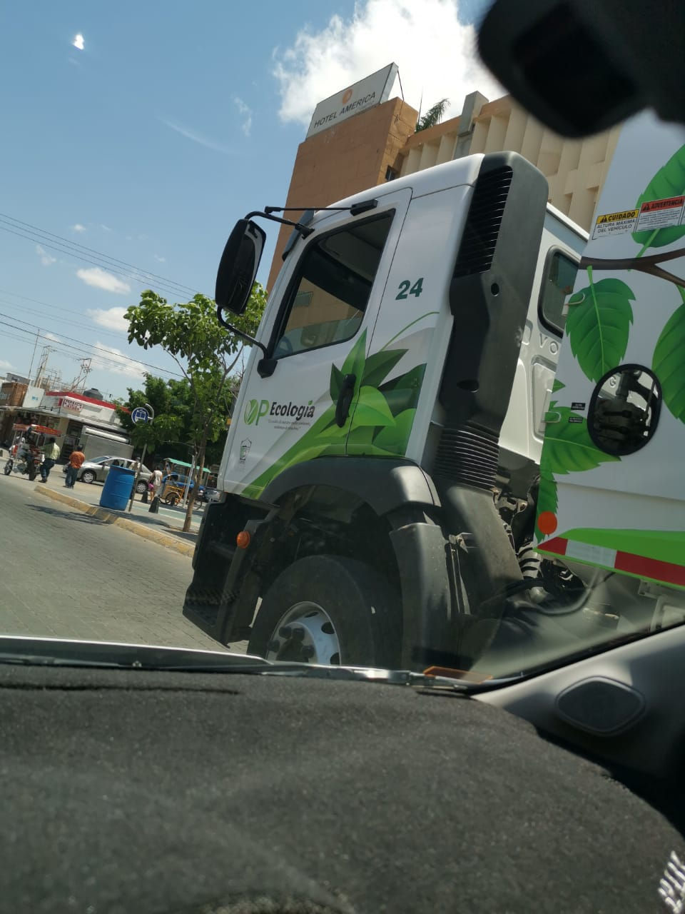 El hecho ocurrió al mediodía de hoy, y fue fotografiado por ciudadanos que alcanzaron a observar el momento preciso en que el camón marcado con el número económico 24 no guardó el deber de cuidado y terminó dañando el señalamiento vial y por consecuencia también el rin y la llanta de la pesada unidad.