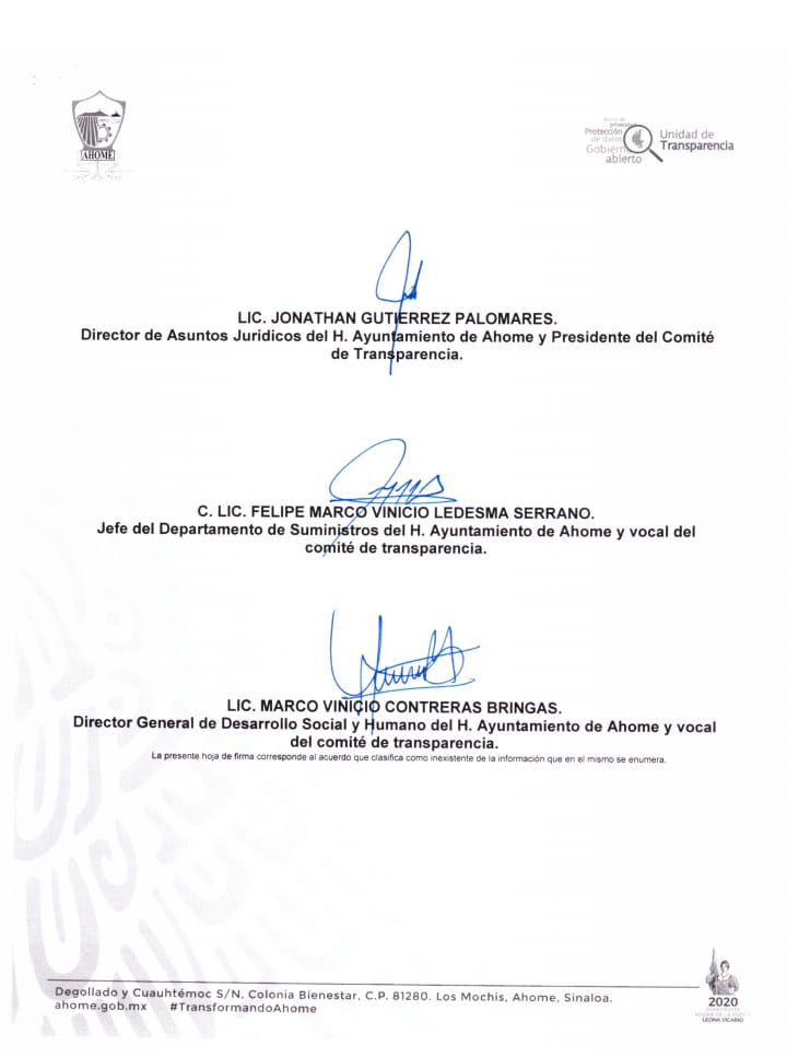 Fue el pasado 26 de febrero, cuando Pável Castro, director del Órgano Interno de Control, sostuvo frente al alcalde Manuel Guillermo Chapman Moreno, en conferencia de prensa, que derivado de una denuncia hecha por el colectivo Vigilantes Ciudadanos se habría iniciado una investigación, lo cual según el acta de sesión extraordinaria número 184 del Comité de Transparencia del ayuntamiento de Ahome resultó ser totalmente falso.